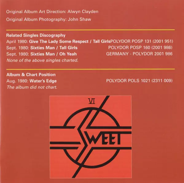Waters Edge is the fourth album by British rock band The Sweet released in 1980. The album reached number 12 on the UK Albums Chart and featured two singles, "Love Is Like Oxygen" and "All You Need Is Love". The album was produced by Nick Tauber and contains a mixture of hard rock and ballads.