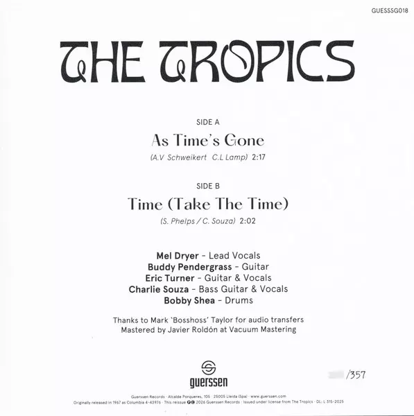 | További információk | Limited Numbered 45RPM Single — Guerssen (Spain, 2026) |