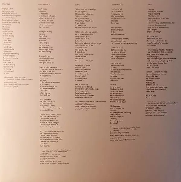 Bass [Rickenbacker], Music By David Hartley | Drums, Percussion, Music By Anthony LaMarca | Grand Piano Lee Pardini | Guitar [Ursa Major Telecaster] Michael Bloch | Vocals, Electric Guitar, Acoustic Guitar, Organ [Hammond], Words By, Music By Adam Granduciel