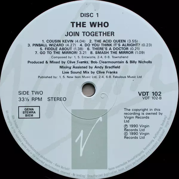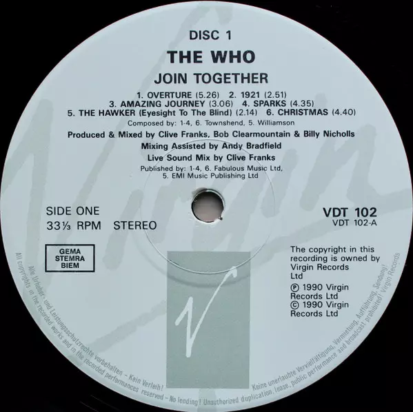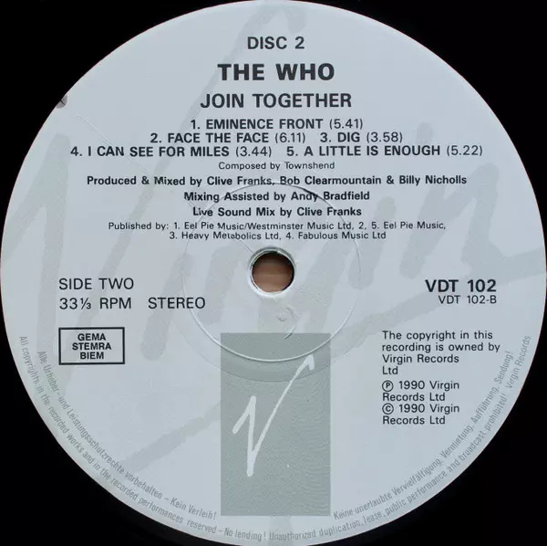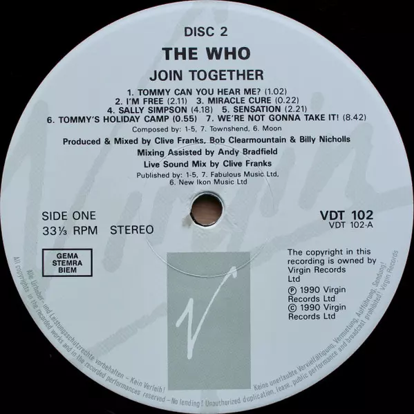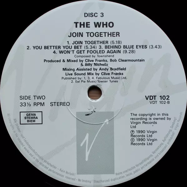The Who: Join Together A lemezen lévő változat bakelitlemez 3LP/Dobozkészlet - standard kiadás. Ez a különleges kiadás - Európa a kiadó által Virgin napján jelent meg 1990. Album műfajok között Rock és Classic Rock.