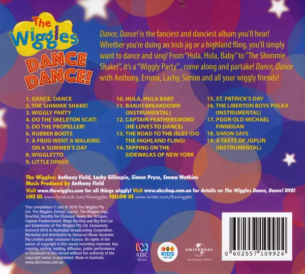 The Wiggles: Dance Dance! A lemezen lévő változat CD - standard kiadás. Ez a különleges kiadás - Ausztrália a kiadó által ABC for Kids a következőkkel együttműködve ABC Music év 17. január 2020. Album műfajba sorolható Gyerek.