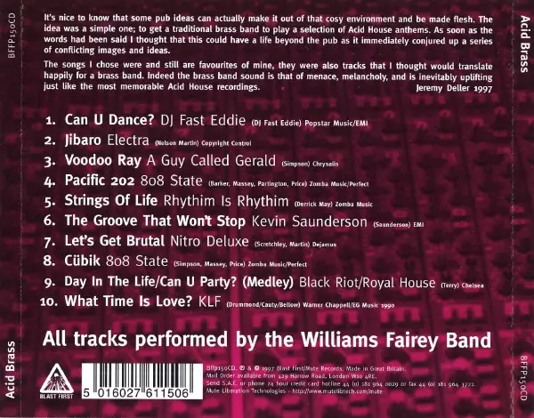 | Cím | Acid Brass (A Collection Of 10 Acid House Anthems Played By The Williams Fairey Brass Band) |