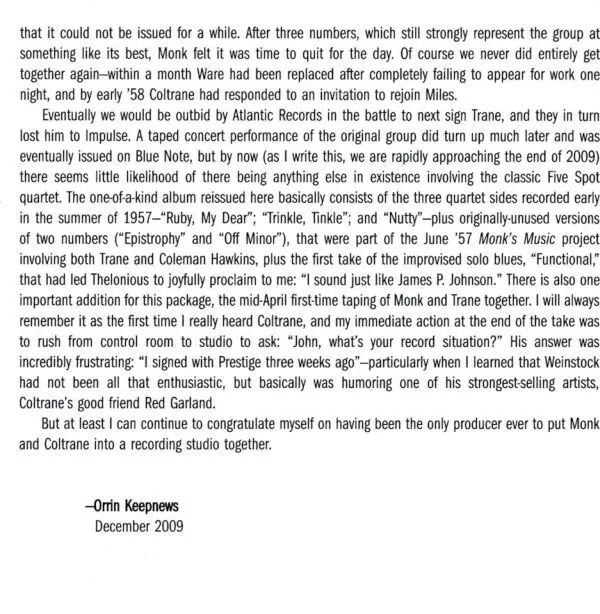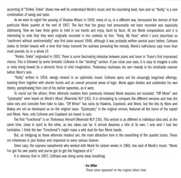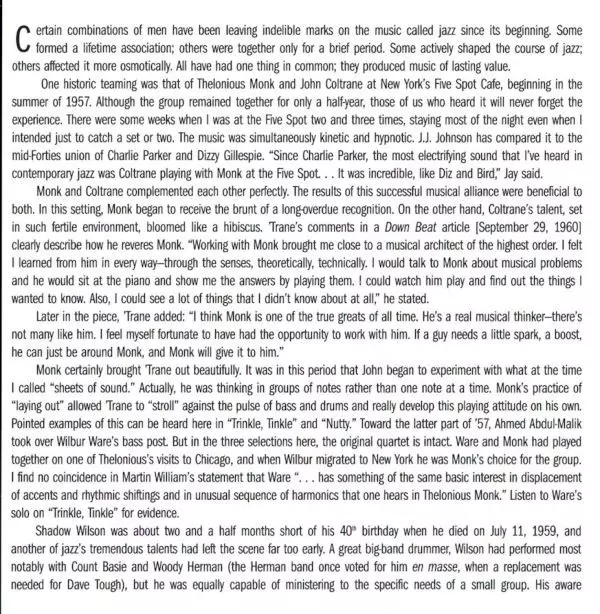 | Művész | John Coltrane | Thelonious Monk |