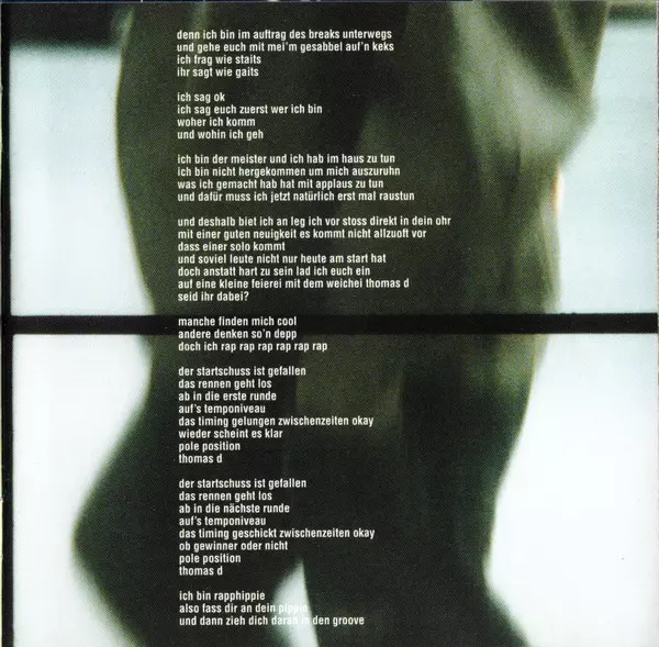 | Lyrics By [Text] Phillip Jakober, Thomas Dürr | Mixed By Jochen Schmalbach, Ulrich Herter | Music By Bertil Mark, Carlos Ebelhäuser, Kurt Ebelhäuser | Producer Thomas D | |||
