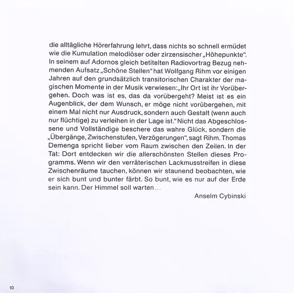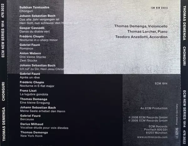 | Művész | Thomas Demenga | Teodoro Anzellotti | Thomas Larcher |