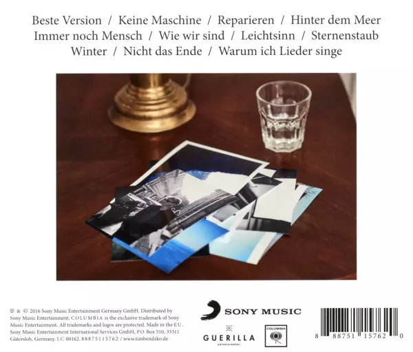 Tim Bendzko: Immer Noch Mensch A lemezen lévő változat CD - standard kiadás. Ez a különleges kiadás - Németország a kiadó által Columbia a következőkkel együttműködve Sony Music év 4. november 2016. Album műfajok között Rock, Pop, Akusztikus zene, Pop Rock és Soft Rock.
