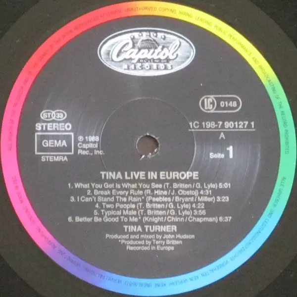 | A5 | Tina Turner: Typical Male | 3:56 min | |