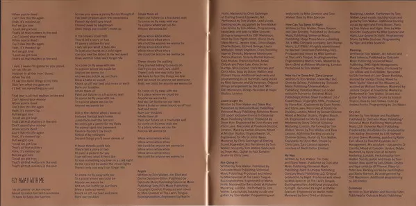 | Performer [Performed By] Tom Walker (12) | Piano, Guitar, Synthesizer, Programmed By Mark Ralph | Producer Jonathan Quarmby, Mark Ralph | Vocals, Guitar Tom Walker (12) | Written-By Tom Walker (12) | |||