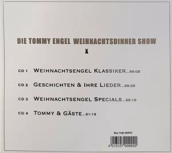 Tommy Engel: Weihnachtsengel X (Die Tommy Engel Weihnachtsdinner Show) A lemezen lévő változat 4CD/Dobozkészlet - standard kiadás. Ez a különleges kiadás - Németország a kiadó által Unic Load Records év 17. február 2023. Album műfajok között Színpad és képernyő, Folk, World, & Country és Holiday.