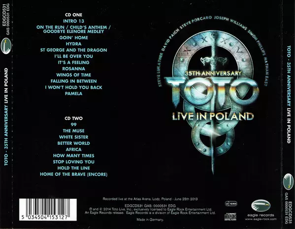A spectacular concert as part of the 2013 world tour sees Toto celebrate the band's 35th anniversary at the Atlas Arena in Lodz, Poland.