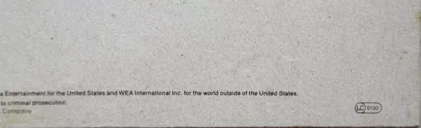 | További információk | 1989 Original Pressing Vinyl |