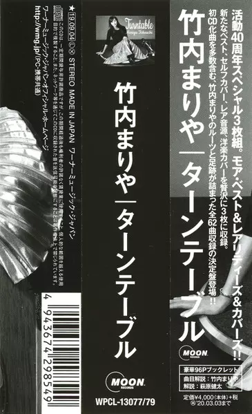Mariya Takeuchi: Turntable = ターンテーブル DLX | LTD A lemezen lévő változat 3CD - deluxe korlátozott példányszámban kiadás. Ez a különleges kiadás - Japán a kiadó által Moon Records (5) év 13. szeptember 2019. Album műfajok között Rock, Pop, Folk, World, & Country, Elektronikus zene, Blues, Jazz, Funk / Soul, Ballada, Synth-Pop, Soul, Funk, Disco, Jazz-Funk, Kayōkyoku, Soft Rock, AOR, Boogie és City Pop.