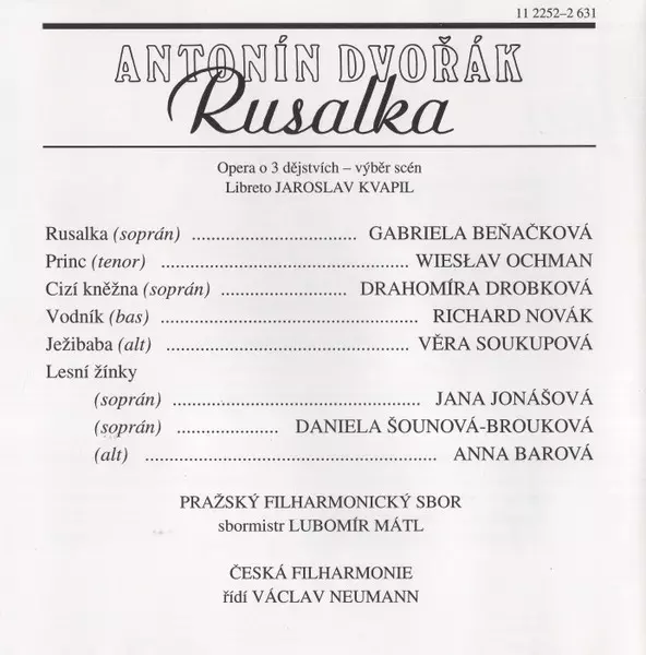 | Művész | The Czech Philharmonic Orchestra | Václav Neumann | Gabriela Beňačková | Jana Jonášová | Richard Novák | Věra Soukupová | Wiesław Ochman | Anna Barová | Drahomíra Drobková | Daniela Šounová |
