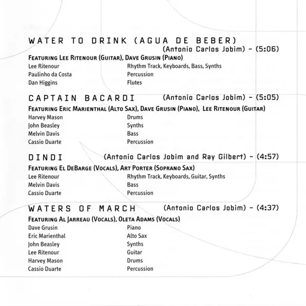 | Bass Lee Ritenour | Other [Original Samples By] João Gilberto | Piano Russell Ferrante | Vocals Al Jarreau, Oleta Adams | |||