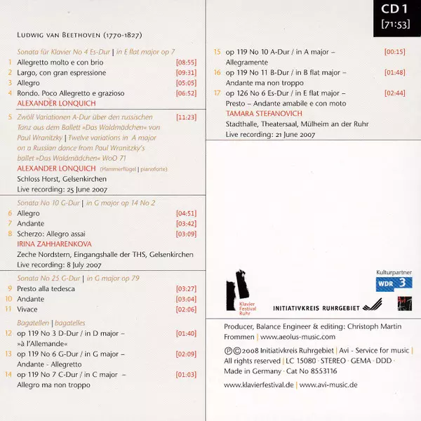 | Composed By Ludwig van Beethoven | Piano Alexander Lonquich | |||