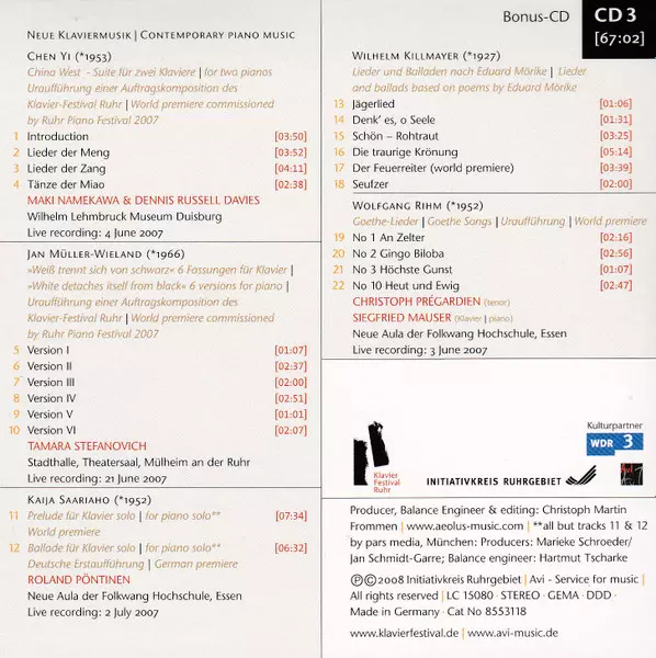 | Composed By Wolfgang Rihm | Piano Siegfried Mauser | Tenor Vocals Christoph Prégardien | |||