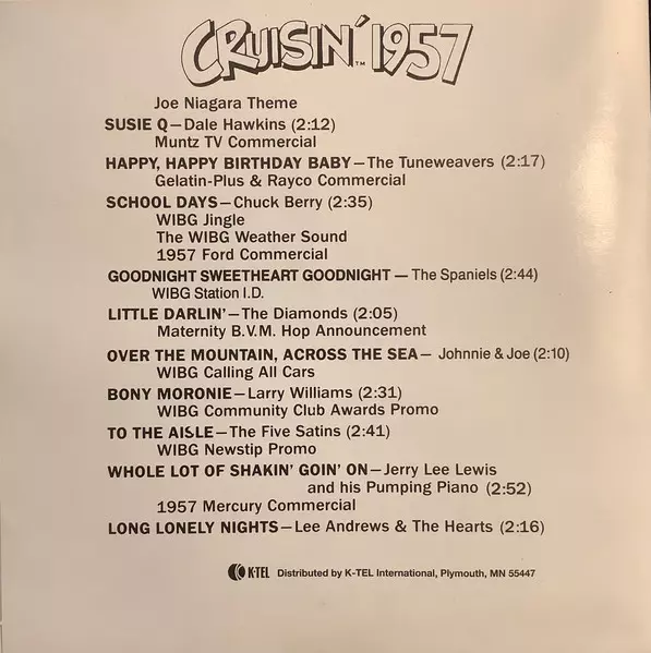 | Cím | Cruisin' 1957 - Joe Niagara, WIBG Philadelphia, Pennsylvania |