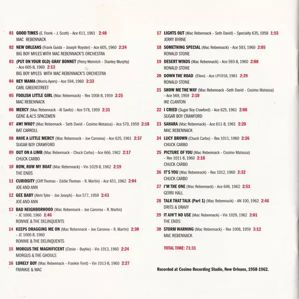 | Cím | Good Times In New Orleans 1958-1962 - In The Studio With Mac Rebennack Aka Dr. John |