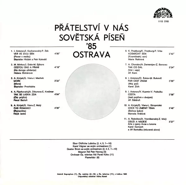 | Cím | Přátelství V Nás - Ostrava '85 (VII. Přehlídka Sovětské Populární Písně) |