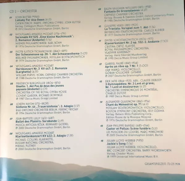 2-8 | Russian National Orchestra, Mikhail Pletnev, Michael Collins: Klarinettenkonzert KV 622: 2. Adagio | 7:39 min | |