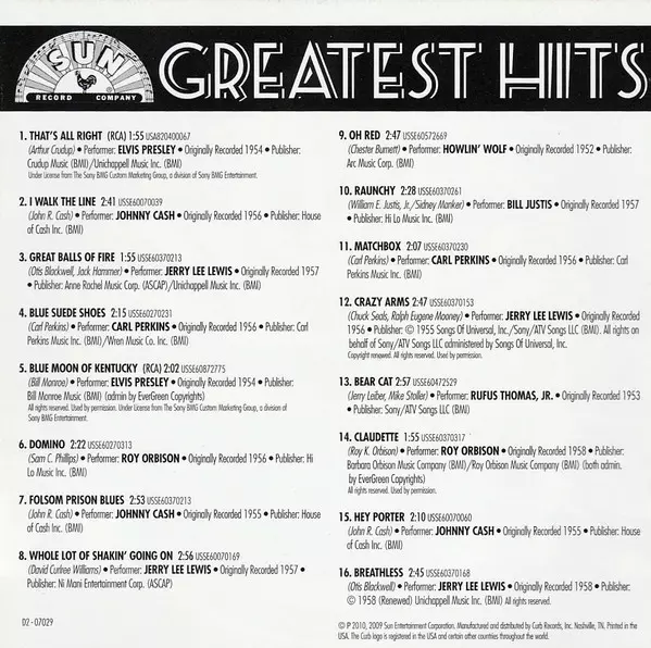 | Cím | Sun Records Greatest Hits |