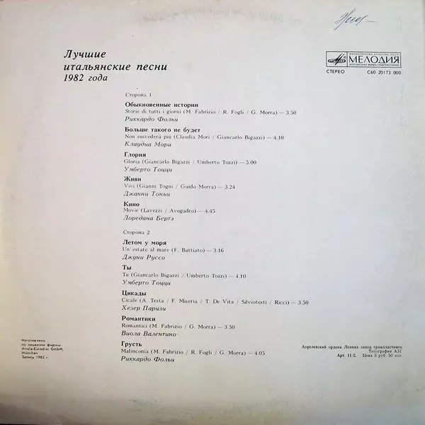 | A1 | Riccardo Fogli: Обыкновенные Истории = Storie Di Tutti I Giorni | 3:50 min | |