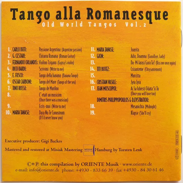 | Cím | Tango Alla Romanesque - Old World Tangos Vol. 2 |