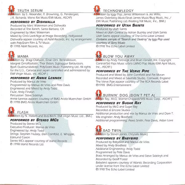 | Arranged By [Orchestra] Marius de Vries, Steve Sidelnyk | Co-producer Pete Davis | Composed By Laurie Johnson | Mixed By Andy Bradfield | Producer Marius de Vries | Programmed By Marius de Vries, Pete Davis, Pete Davis, Steve Sidelnyk | Recorded By [Orchestra] Geoff Foster | |||