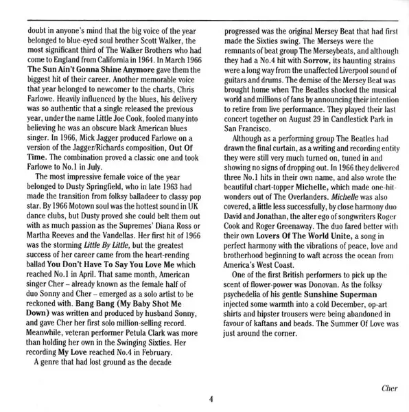 | 10 | Cher: Bang Bang (My Baby Shot Me Down) | 2:46 min | |