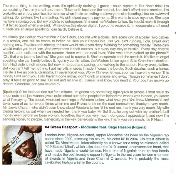 | 4 | Modenine, Sage: Green Passport | 3:44 min | |