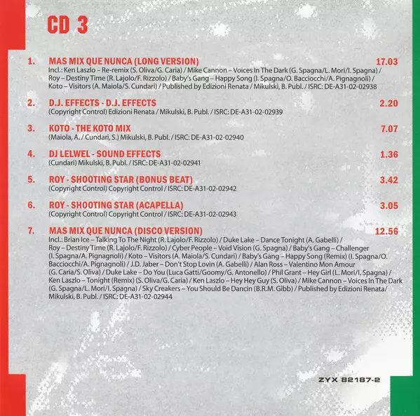 | 3-07 | Mas Mix Que Nunca (Disco Version) | 12:55 min | |
