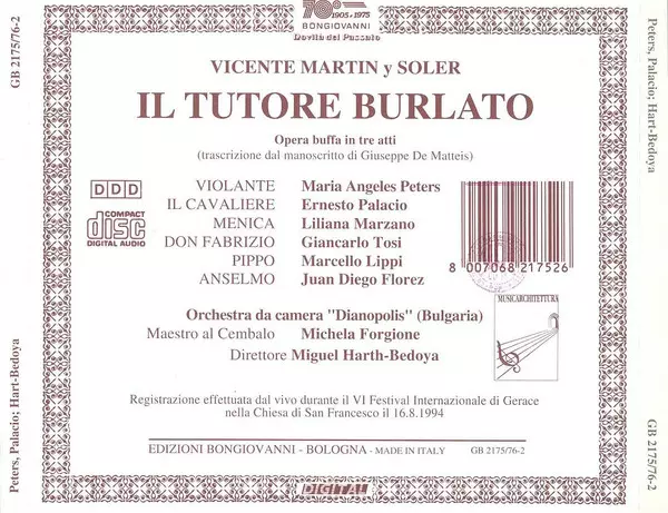 | Művész | Juan Diego Florez | Miguel Harth-Bedoya | Vicente Martin Y Soler | Marcello Lippi | Ernesto Palacio | Maria Angeles Peters | Liliana Marzano | Giancarlo Tosi | Chamber Orchestra Dianopolis |