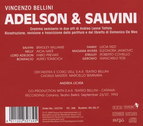 | Művész | Vincenzo Bellini | Fabio Previati | Andrea Licata | Bradley Williams | Alicia Nafé | Aurio Tomicich | Orchestra Del Teatro Massimo Bellini Di Catania | Coro Del Teatro Massimo Bellini Di Catania |