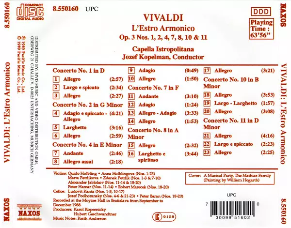 | Cím | L'Estro Armonico (Op.3, Nos. 1, 2, 4, 7, 8, 10 & 11) |