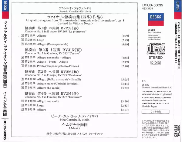 | Művész | Antonio Vivaldi | I Musici | Pina Carmirelli |