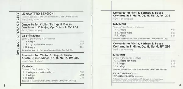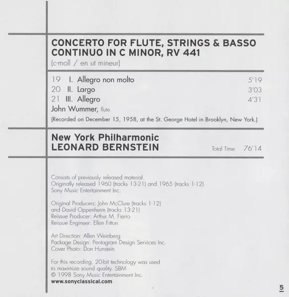 | Művész | Antonio Vivaldi | Leonard Bernstein | New York Philharmonic |