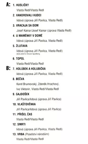 This album is a collaboration between Vlasta Redl and Jiri Pavlica and their bands AG Flek and Hradistan. It was released in 1994 and contains 11 tracks.