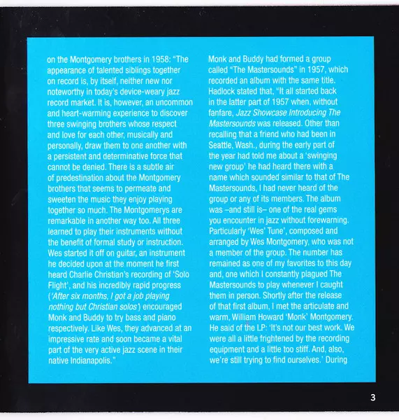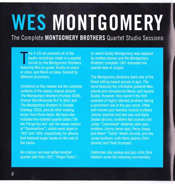 Wes Montgomery: The Complete Montgomery Brothers Quartet Studio Sessions A lemezen lévő változat 3CD - felújított kiadás. Ez a különleges kiadás - Európa a kiadó által Essential Jazz Classics év 27. október 2017. Album műfajba sorolható Jazz. 24 Bit.