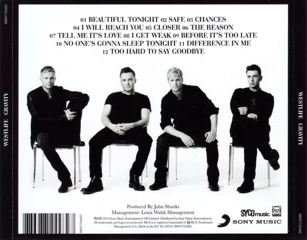 Westlife: Gravity A lemezen lévő változat CD - standard kiadás. Ez a különleges kiadás - Európa a kiadó által Syco Music a következőkkel együttműködve RCA Label Group és Sony Music év 1. június 2015. Album műfajok között Rock, Pop, Ballada és Pop Rock.