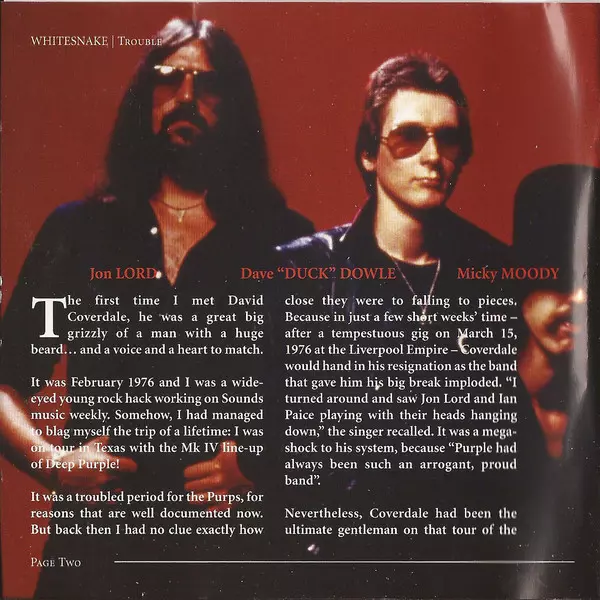 "Trouble" was WHITESNAKE's first full-length album and was released a few months after the "Snakebite EP"! With this album WHITESNAKE laid the musical and visual foundation for their future career in 1978. The line-up was made up of old veterans including Coverdale, Bernie Marsden, Micky Moodie and former Deep Purple keyboardist Jon Lord. The en...