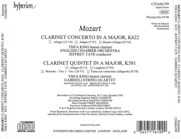 | Cím | Clarinet Concerto, K622 - Clarinet Quintet, K581 |