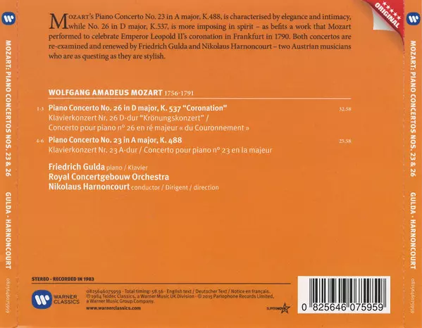 | Művész | Wolfgang Amadeus Mozart | Nikolaus Harnoncourt | Concertgebouworkest | Friedrich Gulda |