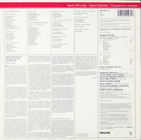 | Művész | Wolfgang Amadeus Mozart | John Eliot Gardiner | The Monteverdi Choir | The English Baroque Soloists | Anne Sofie Von Otter | Barbara Bonney | Hans Peter Blochwitz | Willard White |