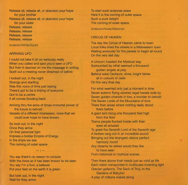 Bass [Rickenbacker], Vocals Chris Squire | Composed By Jon Anderson | Drums, Crotales Alan White | Mandolin [Gibson Electric & Acoustic], Vocals Steve Howe | Synthesizer [Polymoog & Birotron] Rick Wakeman | Vocals Jon Anderson | Voice Damion Anderson