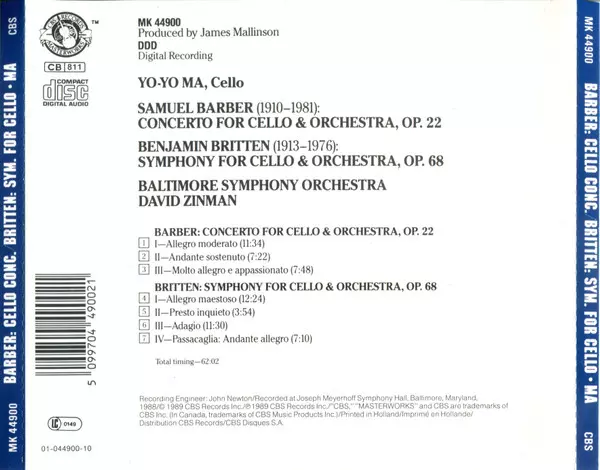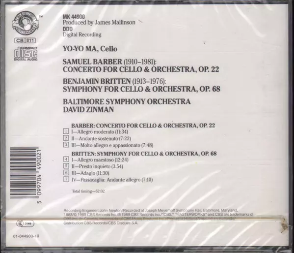 Művész | Yo-Yo Ma | Benjamin Britten | Samuel Barber | David Zinman | Baltimore Symphony Orchestra |