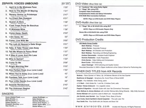 | Művész | Zephyr: Voices Unbound |