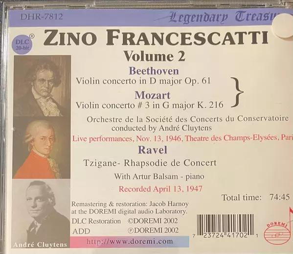 | Művész | Wolfgang Amadeus Mozart | Ludwig van Beethoven | Maurice Ravel | Zino Francescatti |